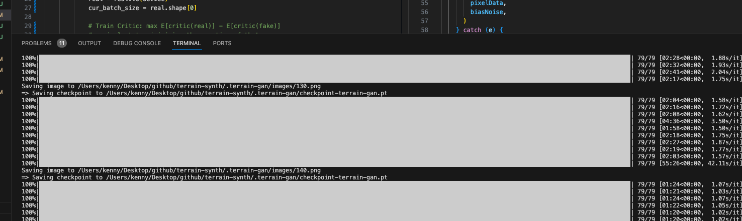 I cranked out this model last night. The results are immediately much better than the home-spun WDCGAN I implemented myself. I also was able to parameterize the python code much better, so it’s now driven by a .env config file, which made testing hyperparams easier, and I was able to bump up the output size to 128x128 instead of 64x64 (I’m still not getting convolutions and how they stack together to increase the image size, but I was able to poke around at values to get the output I want, I’ll need to look at this more closely)