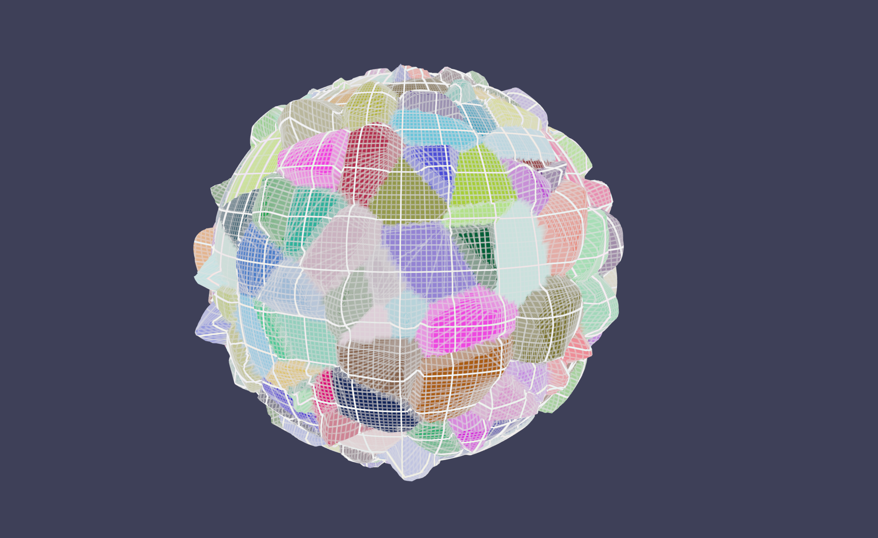 Planet subdivided by regions, there are ~41k regions on this sphere.